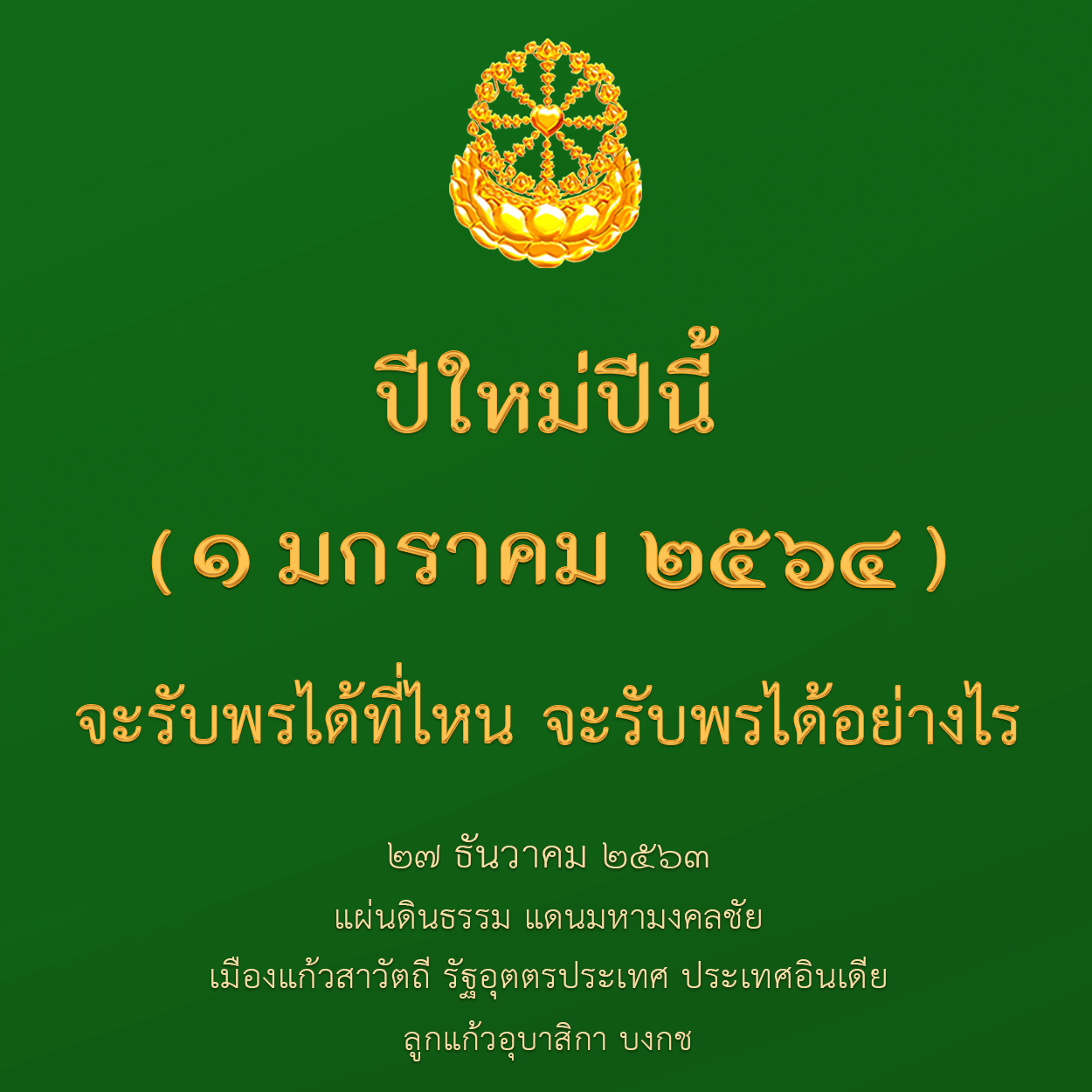 วันที่ ๒๗ เดือนธันวาคม พุทธศักราช ๒๕๖๓